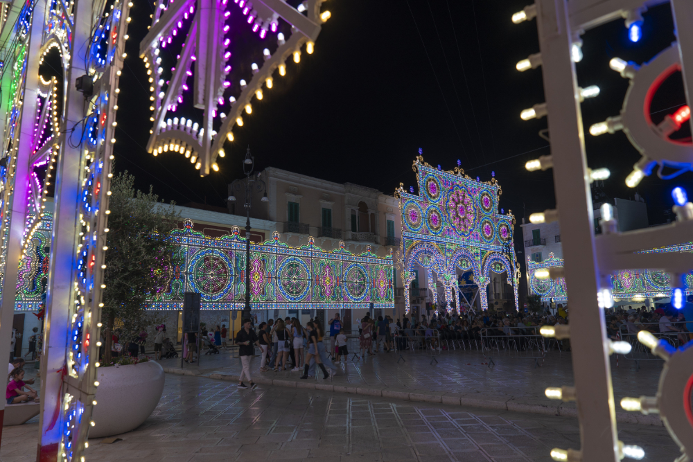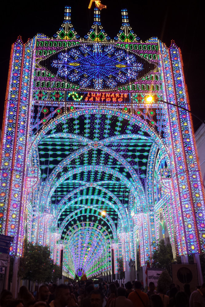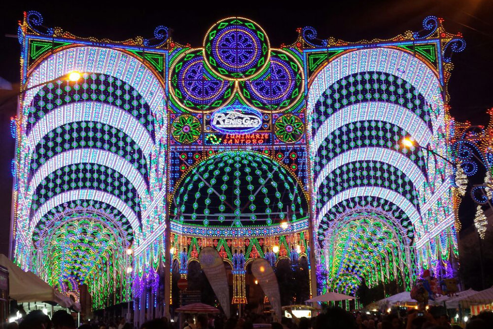 Luminarie Santoro realizza scenografie luminose per i festeggiamenti dei Santi Patroni e per animare con luce e magia qualsiasi evento importante.